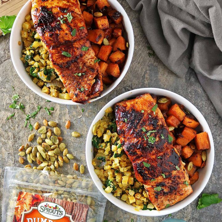 Many bowls don't have meat at all but the inclusion of salmon in this is a great protein boost.