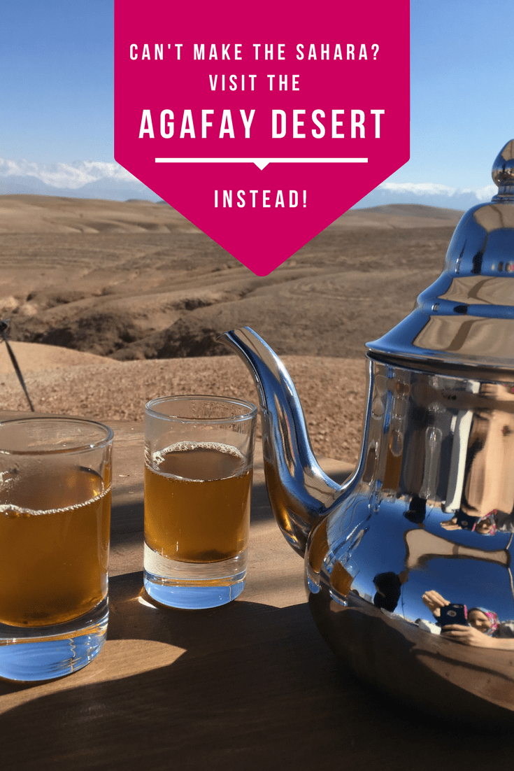 If you don’t have the time or desire to make this big trip, there are other desert tours from Marrakech. Not a lot of people know about the nearby Agafay Desert just outside Marrakech. While you won’t find the golden, rolling sand dunes here (it’s a stone desert), you absolutely can have the secluded desert experience complete with a stunning view of the High Atlas Mountains.