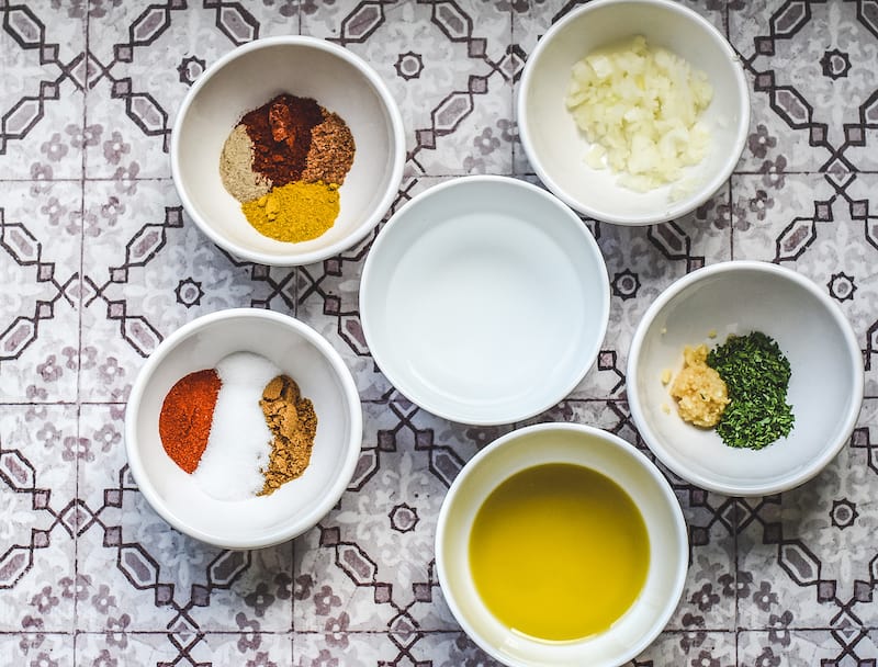 If there is one Moroccan marinade recipe to master, charmoula is the one! It’s very simple and also very versatile. Once you get the basics and learn how the spices taste together you can adjust and really play with the recipe to make it your own.