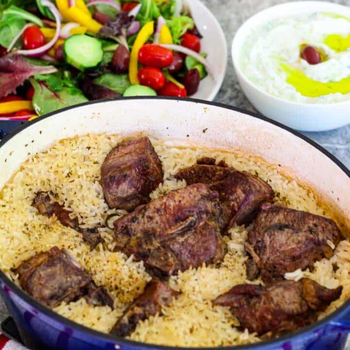 This oven-baked rice dish isn't your typical rice dish; it's loaded with lamb, vegetables, and spices to create a complete meal that's ideal for any gathering.