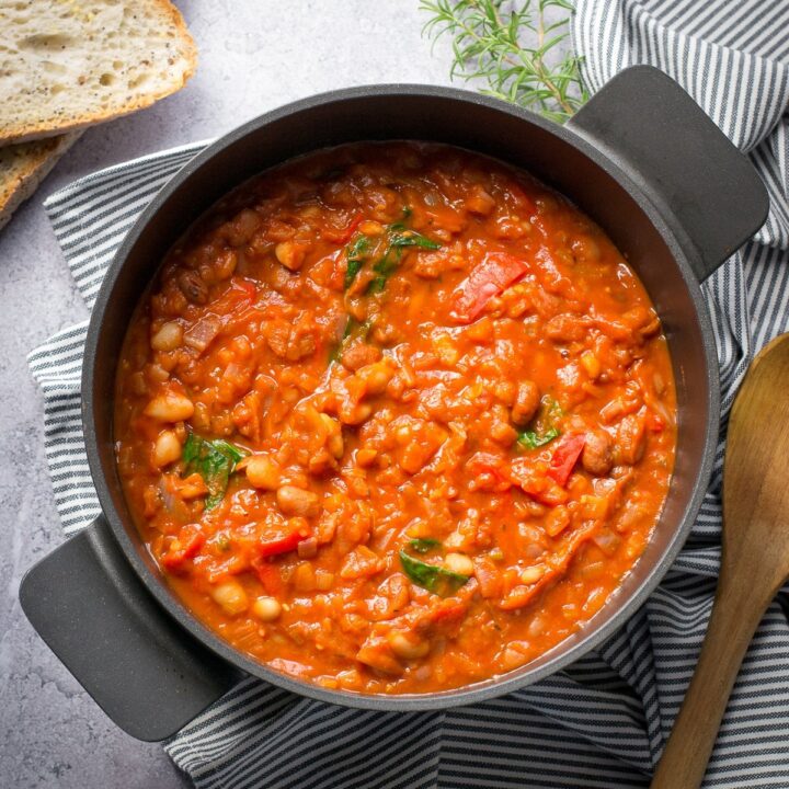 This delicious Tuscan Bean Stew is such an easy one-pot dinner. Packed with flavours of Italy, it can be made on the hob or slow cooker.