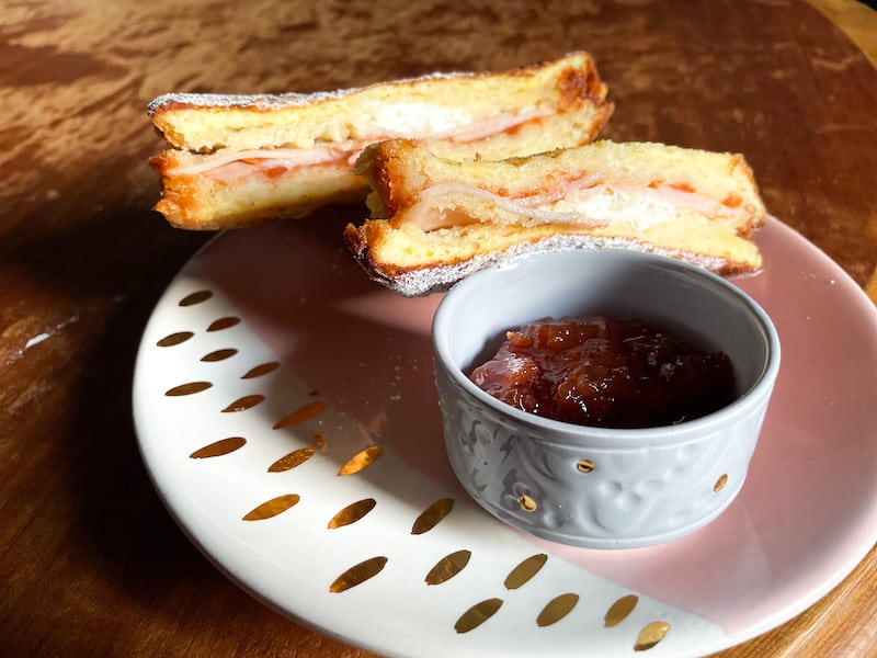 Depending on where you are in the US, the sandwich is prepared and served different ways. I opted for the most decadent version – dipped in egg and fried.