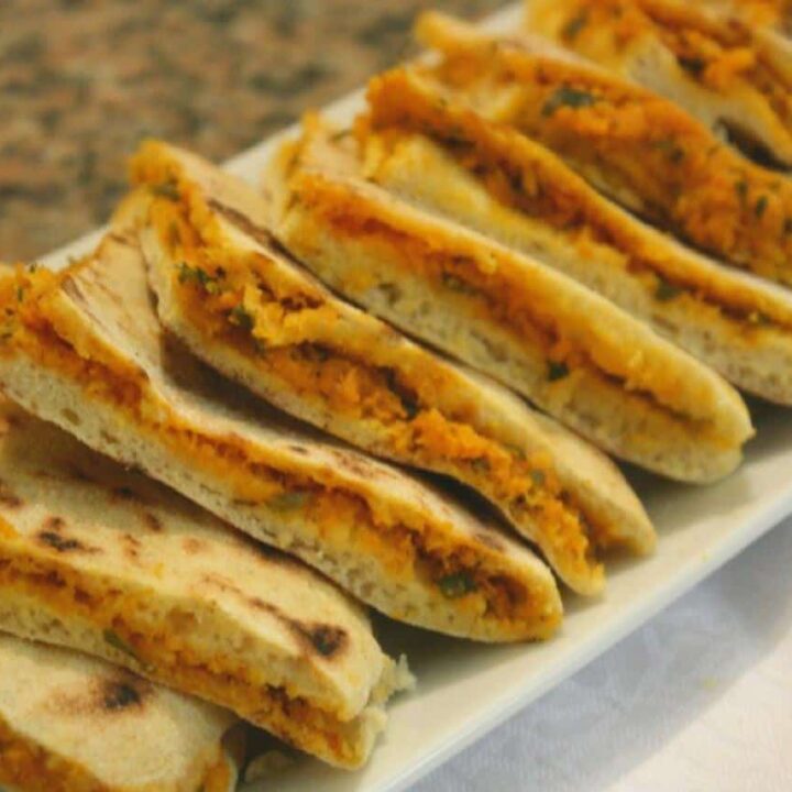 Vegetarian "pizza" bread made with carrots and bread cooked inside fresh bread.