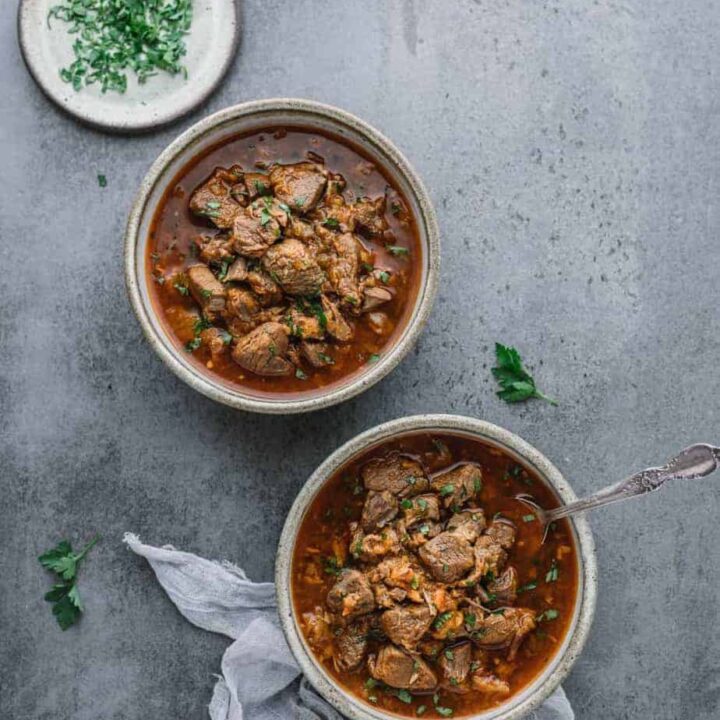 This quick and flavorful Instant Pot stew combines succulent lamb and sweet apricots. Savory spices and broth create a tender, comforting dish for a busy weeknight.