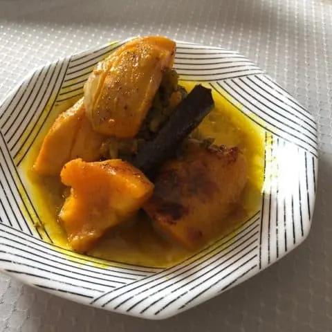 A Moroccan tajine that uses quince paste and walnuts to create a delicious sauce for the roasted chicken.