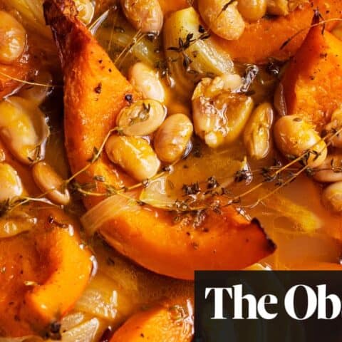 Pumpkin, butter beans and thyme and roast quince with honey recipes