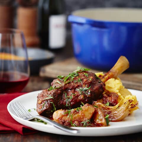 A dish that presents beautifully for a dinner party when you want to wow your guests. Make these lamb shanks with quince when you want a real show stopper.